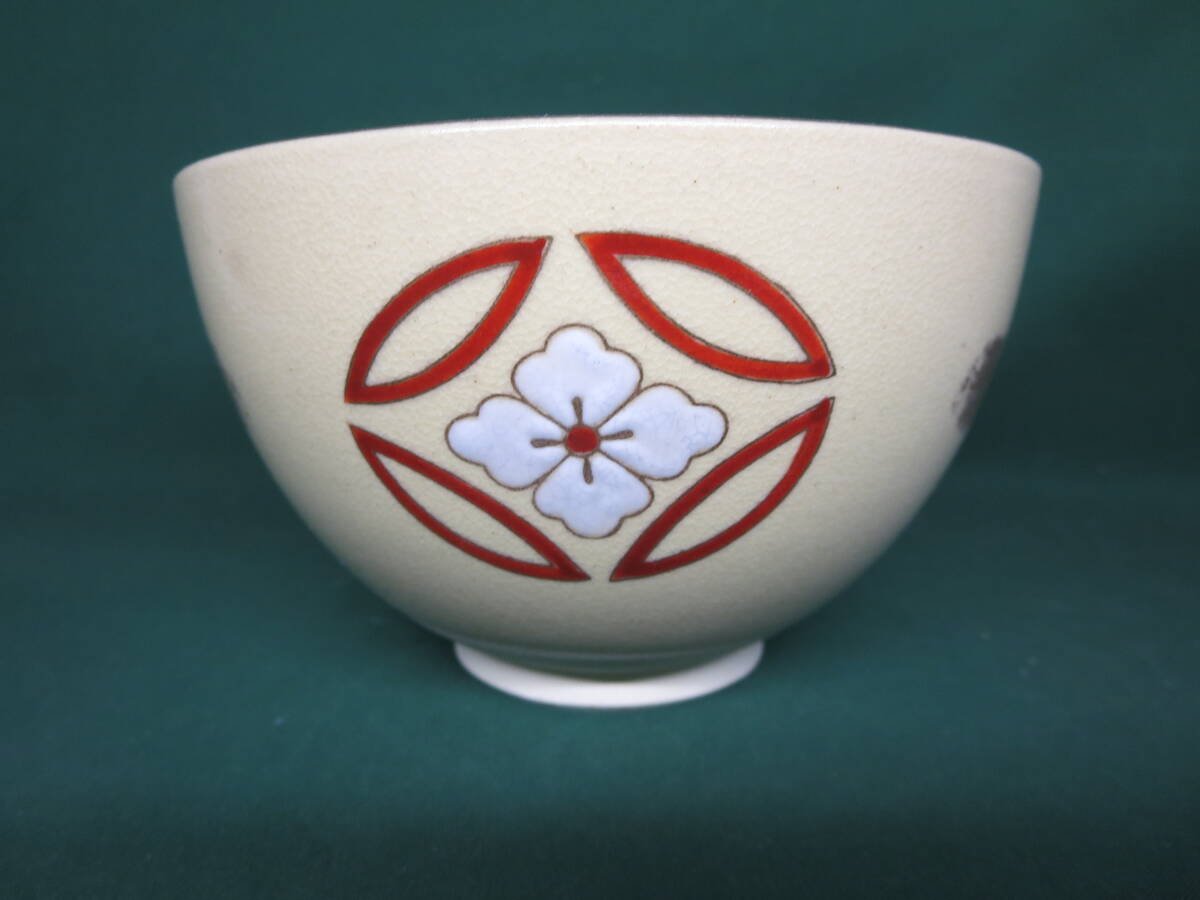 - 送料無料 花 京焼 白 在銘 抹茶茶碗 茶道具