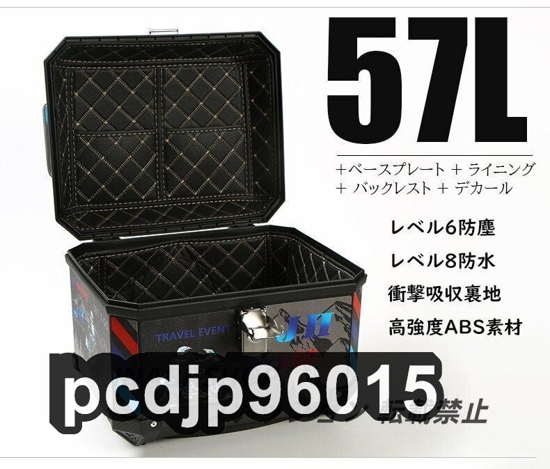 - トップケース オートバイ用 57L 大容量 リアボックス 防水 バイクボックス 取付ベース付