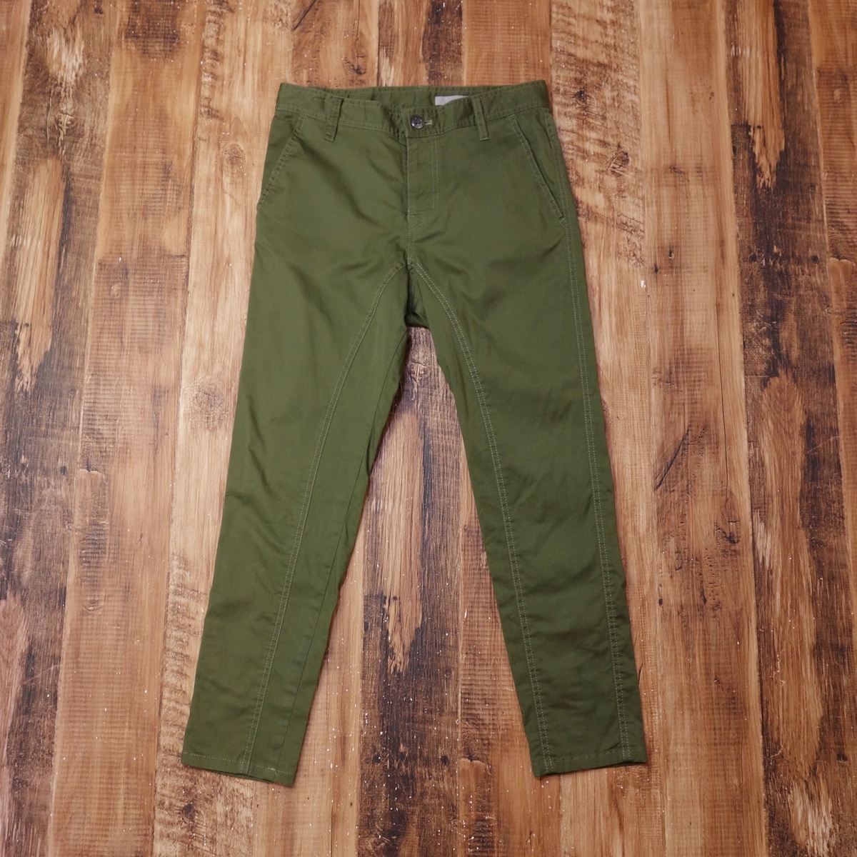 - 美品 アルカリ alcali スリムテーパードストレッチチノパンツ レディース 美脚 日本製 シンプル 2 Mサイズ パンツ グリーン NJ3