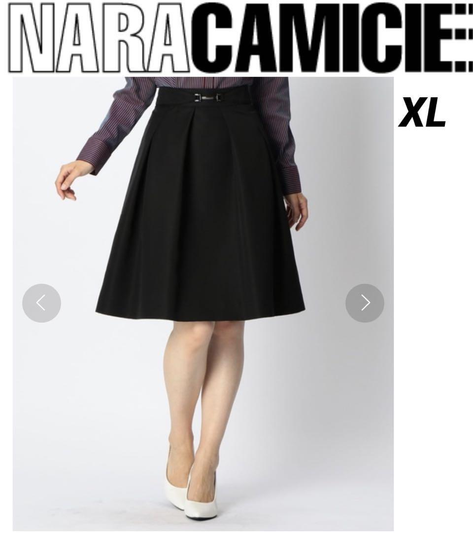 > NARACAMICIE ナラカミーチェ ベルト付き タックスカート フレアスカート 微光沢 ブラック XL
