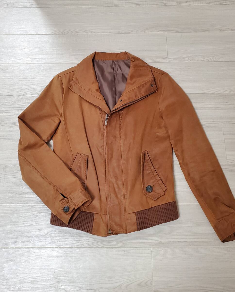 - 中古 美品 JUSTIN HOMME ライダースジャケット ブルゾン アウター メンズ ブラウン 茶色 キャメル 48サイズ Mサイズ