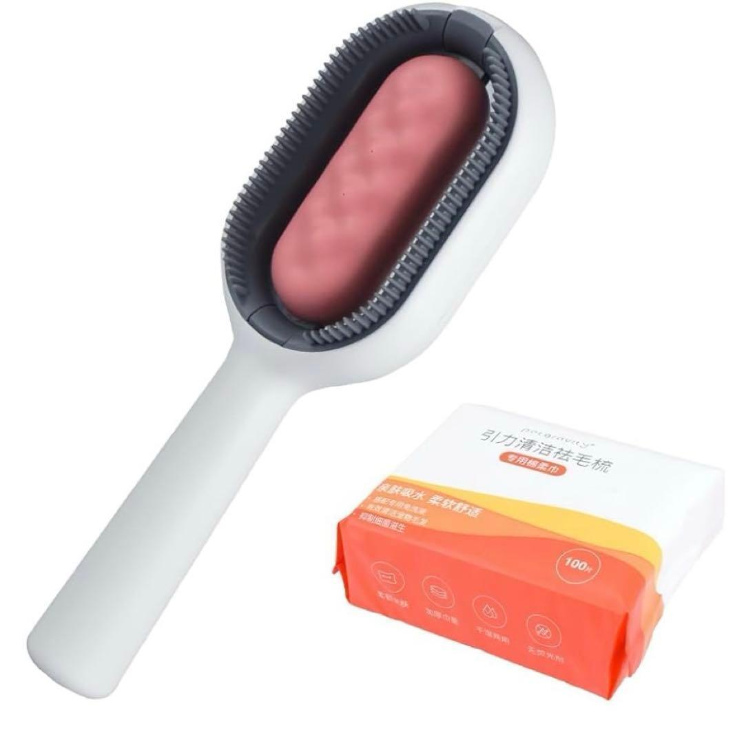 - ペットブラシ 静電気防止 お手入れ マッサージ 犬猫兼用 丸洗い可能 (ピンク)