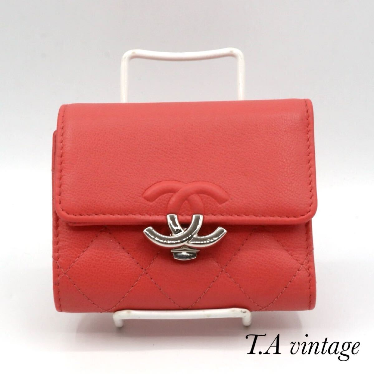 - CHANEL 美品 シャネル キャビアスキン ハーフココ 折り財布 ピンク