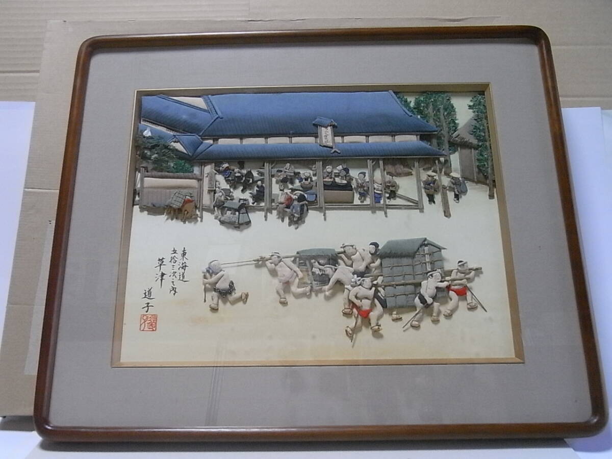 - レトロ 押絵 額入り 東海道五十三次 草津宿 鈴木道子作