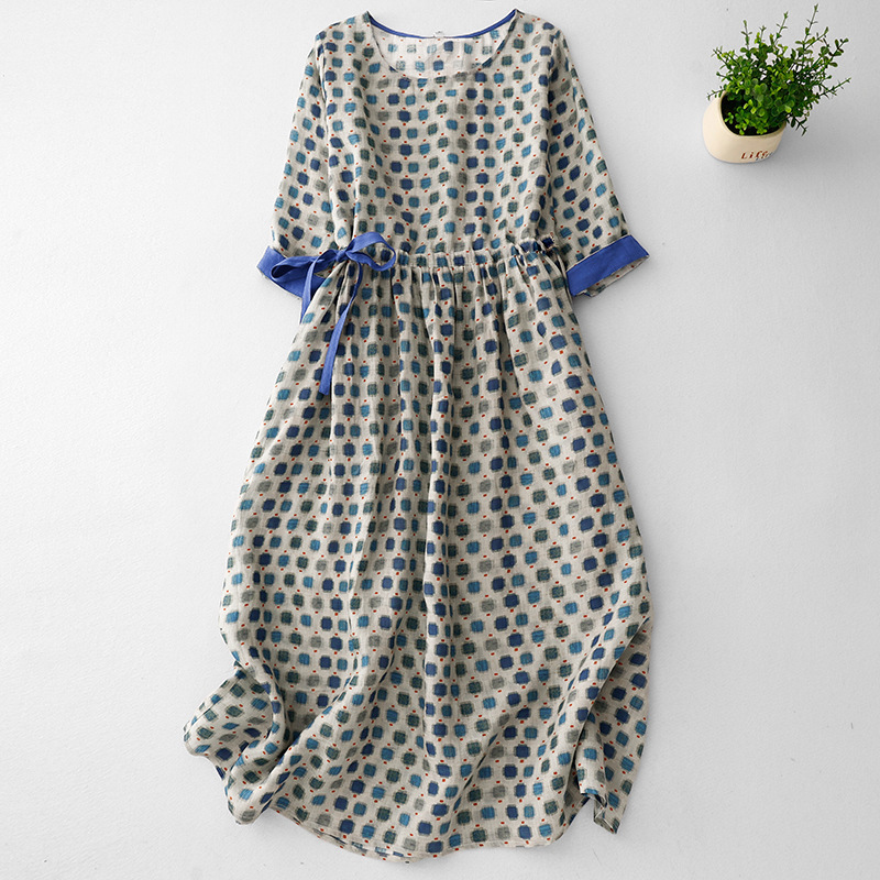 - 人気品夏新作 ワンピース ロングワンピース プリント柄 総柄 半袖 カジュアル ゆったり 着痩せ 通勤 女性着 大人 上品 Aラインワンピース
