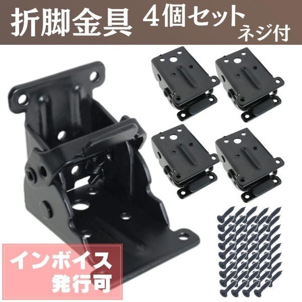 > Y089 折れ脚 折りたたみ脚 折脚金具 4個 テーブル チェアー 椅子 イス 机 デスク 修理 金具 DIY ネジ付 (黒/ブラック)