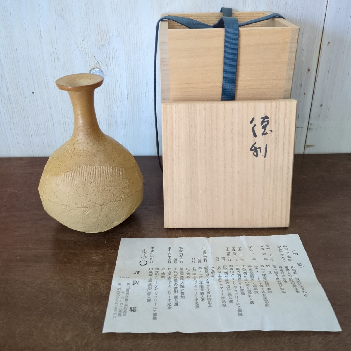 - 備前焼 渡辺聡 徳利 共箱 栞 酒器 師 森陶岳