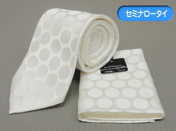 > 西陣織 フォーマルナロータイ チーフ付 白 ドット 大 シルク100% 日本製 礼装 結婚式・披露宴 細ネクタイ メール便可 njc11-NR