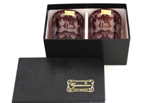 - BOHEMIA Egermann ボヘミアエーゲルマン チエコ共和国 赤色ロックグラス×2 箱付き