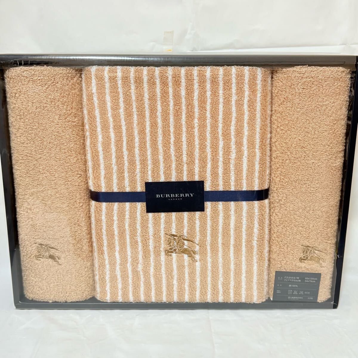 - 美品未使用 BURBERRY LONDON バーバリーロンドン バスタオル フェイスタオル2枚 ストライプ ベージュ 西川産業
