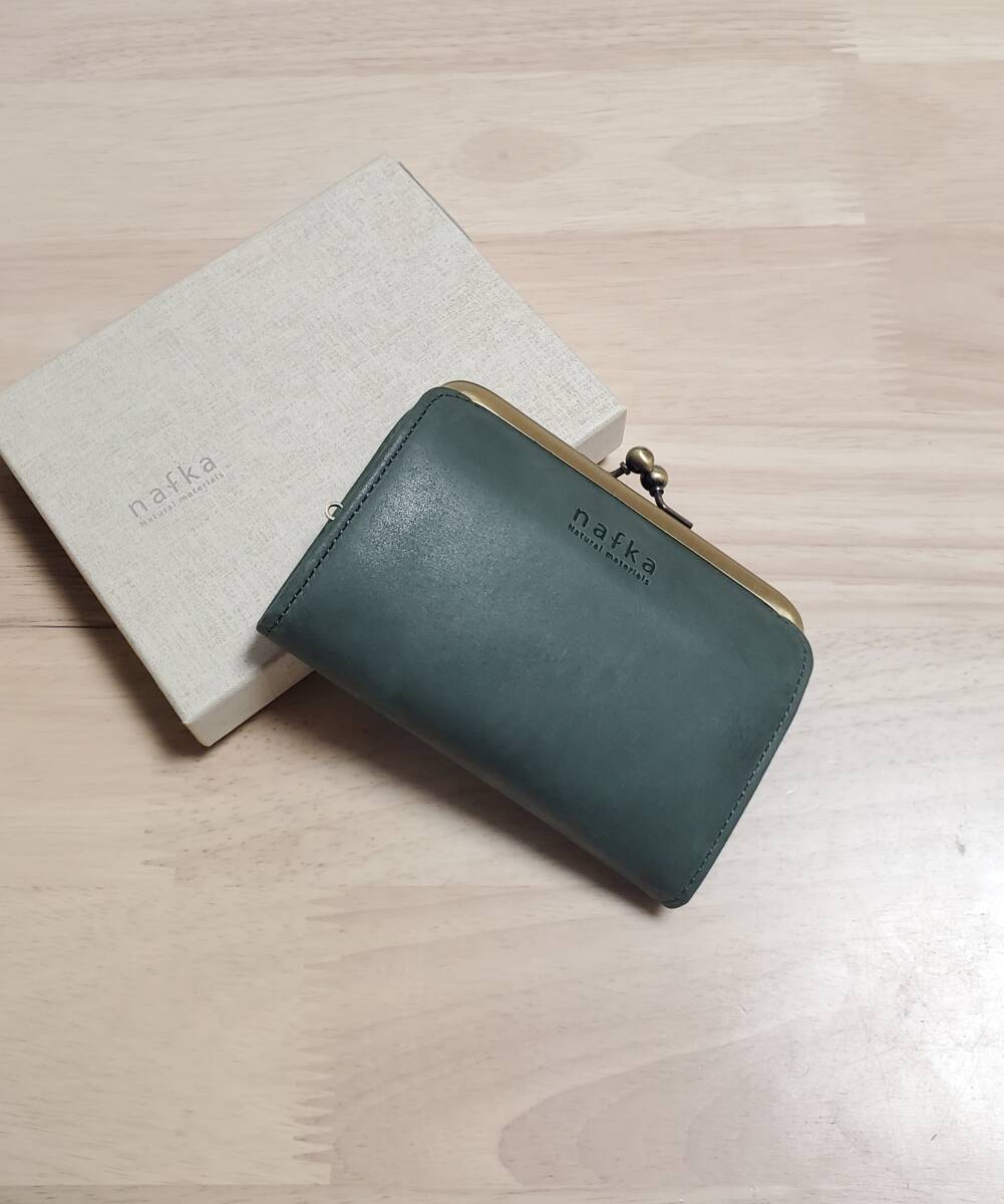 - 新品 未使用 美品 nafka がま口折り財布 レディース ショートウォレット 財布 短財布 二つ折り財布 ガマ口 本革 牛革 革 日本製 グリーン