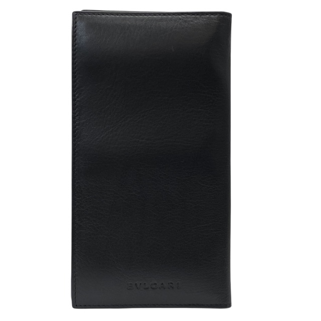 - 【美品】BVLGARI ブルガリ 財布 長財布 ロングウォレット 二つ折り財布 折財布 札入れ ロゴ レザー ブラック 黒