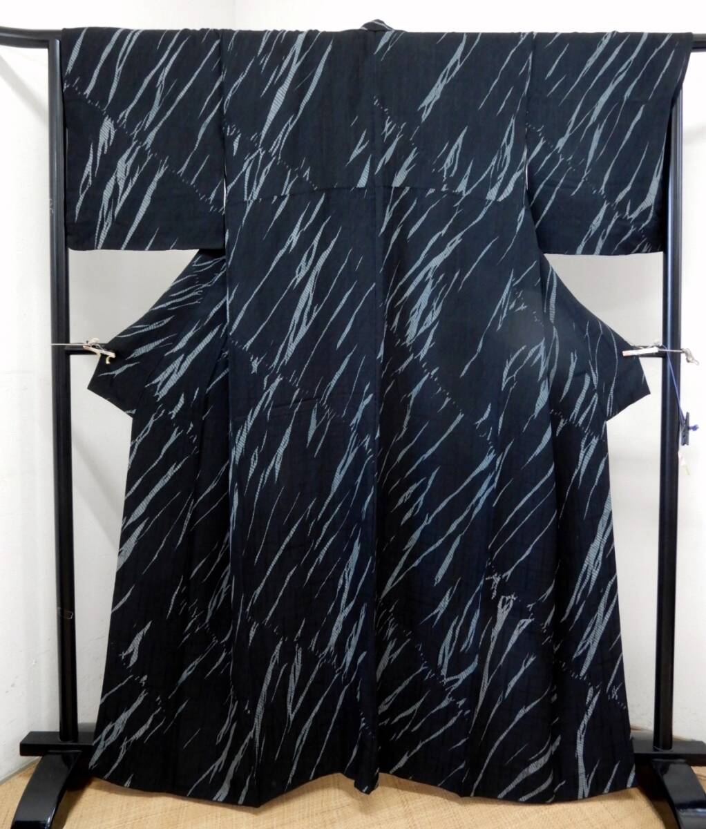 - <銀の斧>正絹・絞り柄着物・お洒落な黒地・現代サイズ・総絞り染め・さが美扱い品