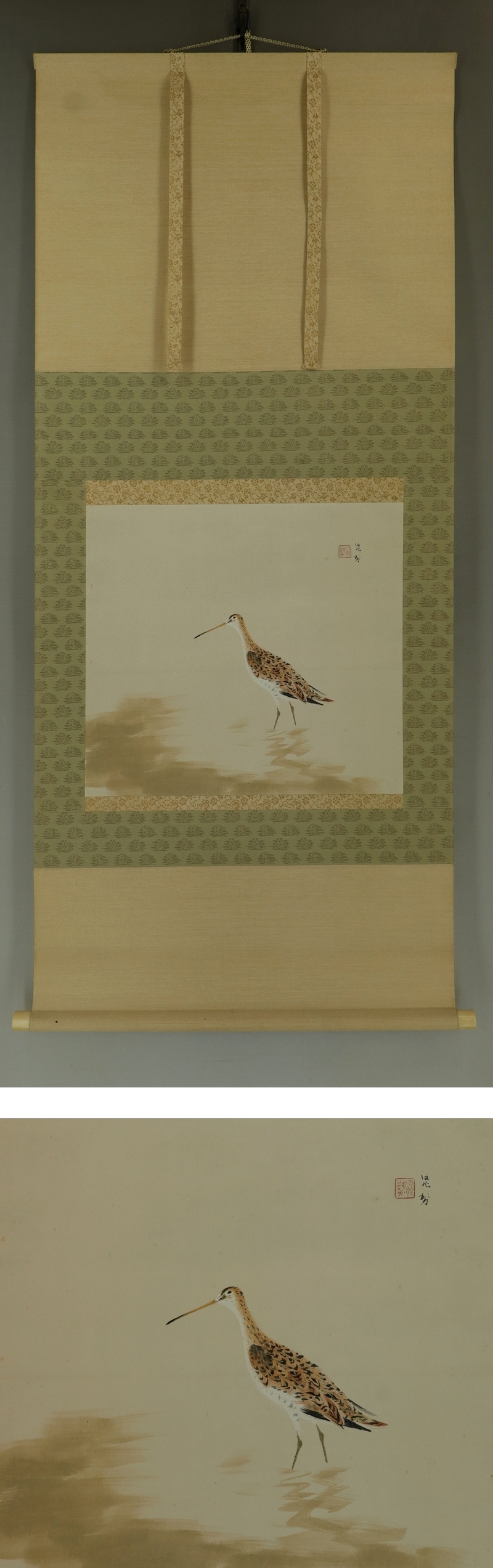 - 【模写】三輪晁勢【鴫】◆紙本◆共箱◆掛軸 r02006