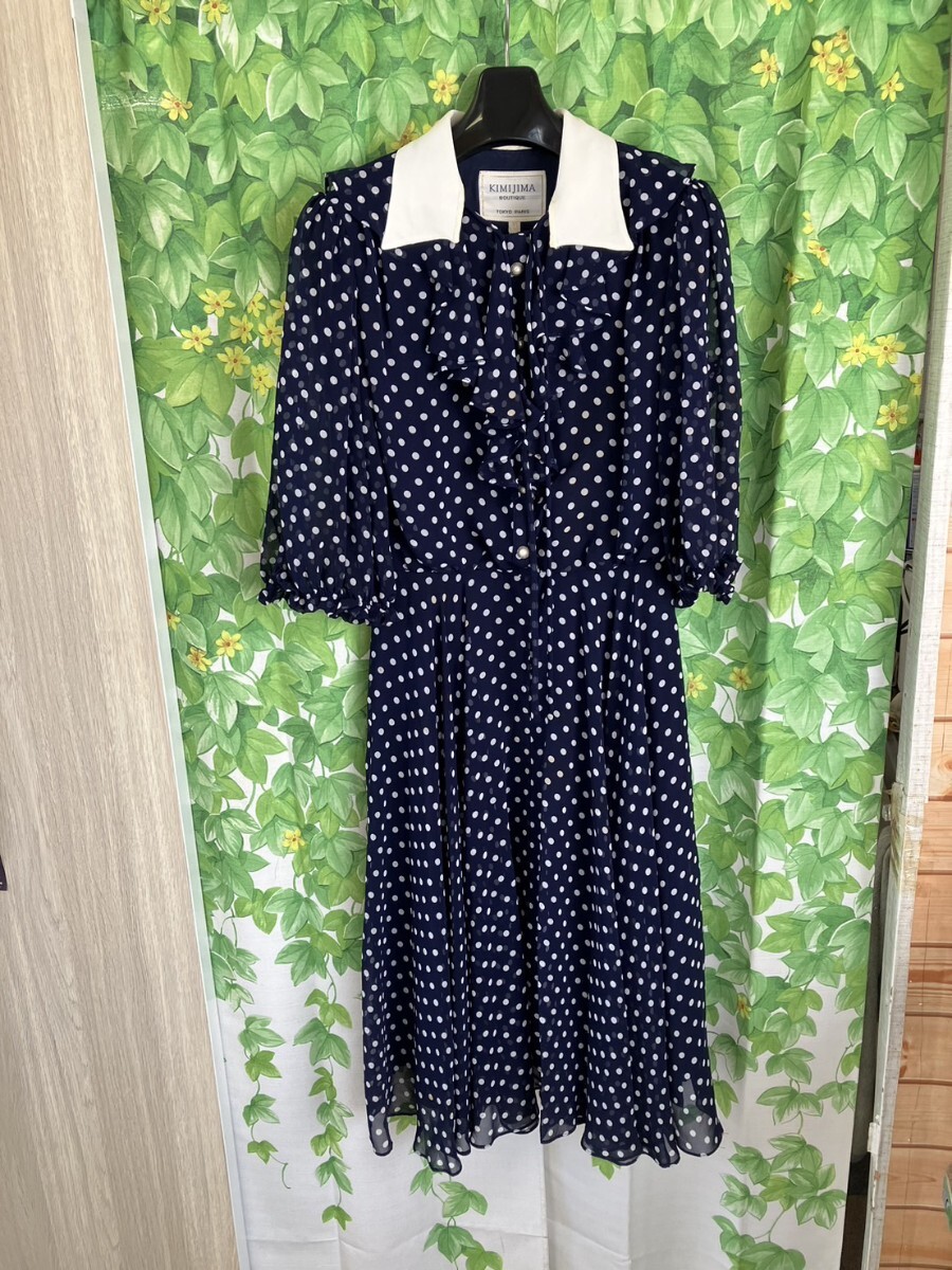 - 【中古品】KIMIJIMA BOUTIQUE キミジマ ブティック ワンピース シャツワンピース ドット柄 レディース ネイビー系 9号 古着