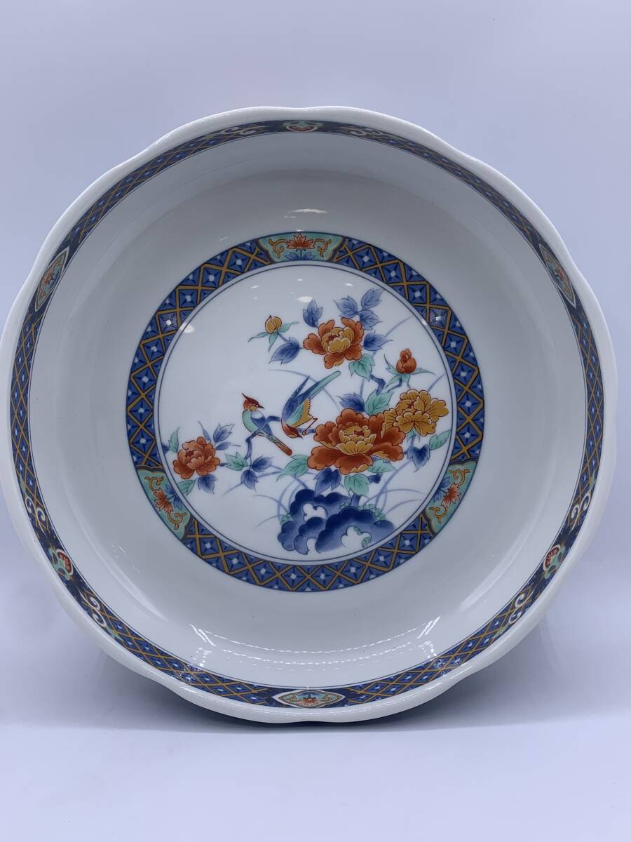 - N41504A◇ 九谷焼 内喜陶苑 花鳥 色絵 大皿 深皿 飾り皿 大鉢 盛鉢 食器 和食器 陶芸 陶磁器 伝統工芸品 工芸品 骨董品 アンティーク