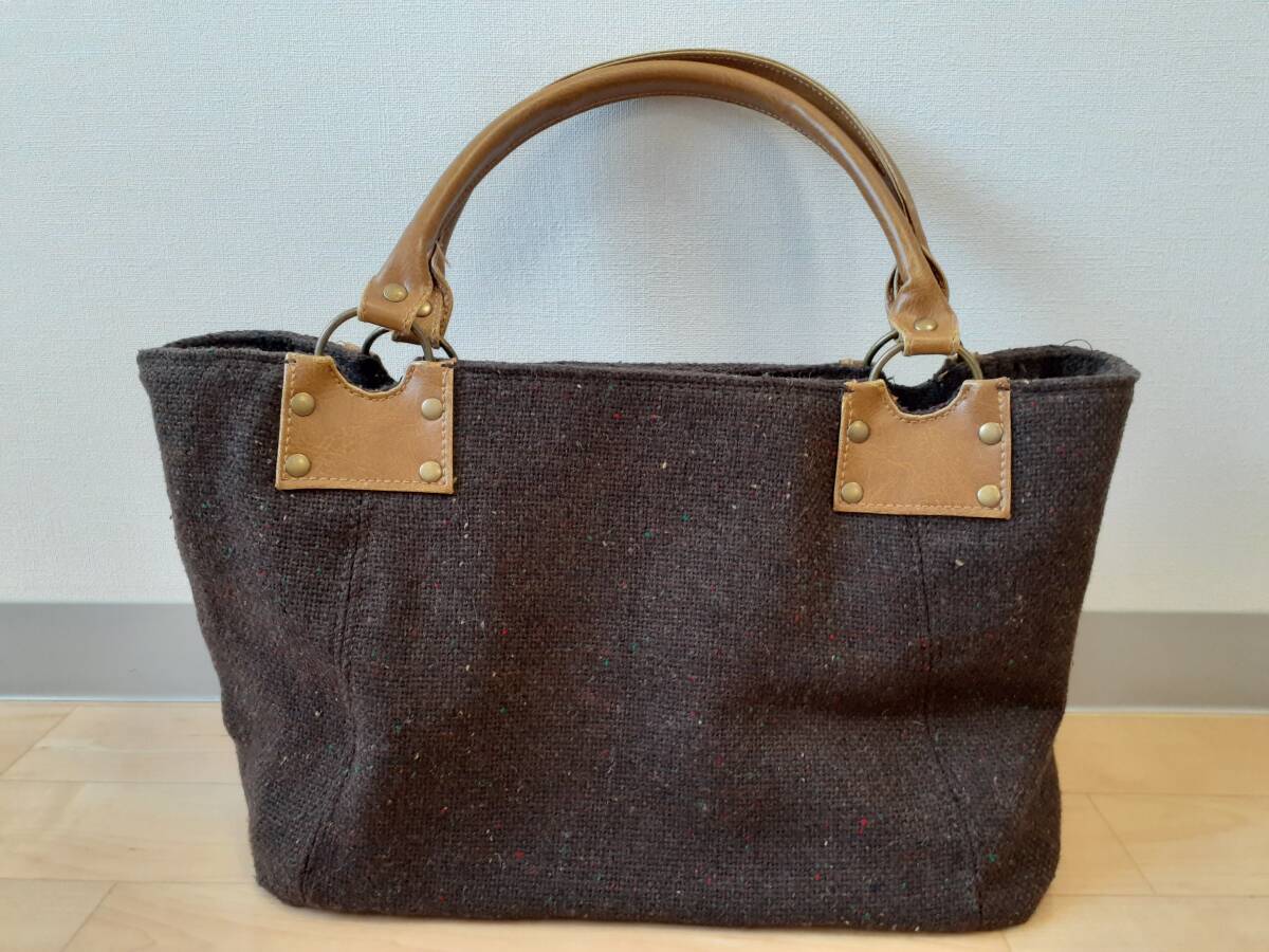 - トートバッグ ハンドバッグ★ツイード調 合成皮革 ダークブラウン ツイード調 合成皮革