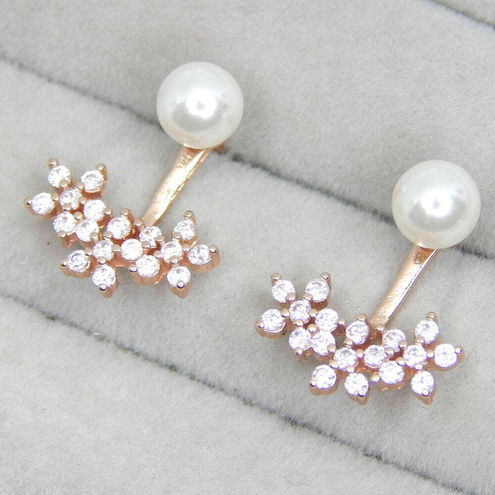 - 極上の逸品 絢爛 厳選 希少 オススメ 限定 レディース ジルコニア 3連フラワー 淡水真珠 CZダイヤモンドピアス シルバー925 ピンクゴールド