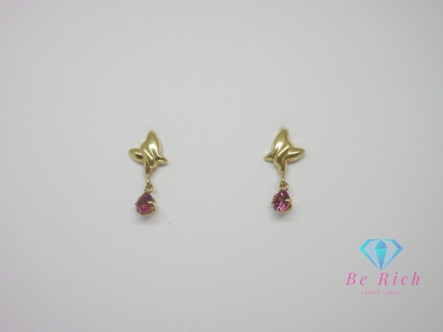 > K18 YG カラーストーン 付 デザイン スタッド ピアス イエローゴールド 18金 750 宝石 ジュエリー アクセサリー 【中古】th12667
