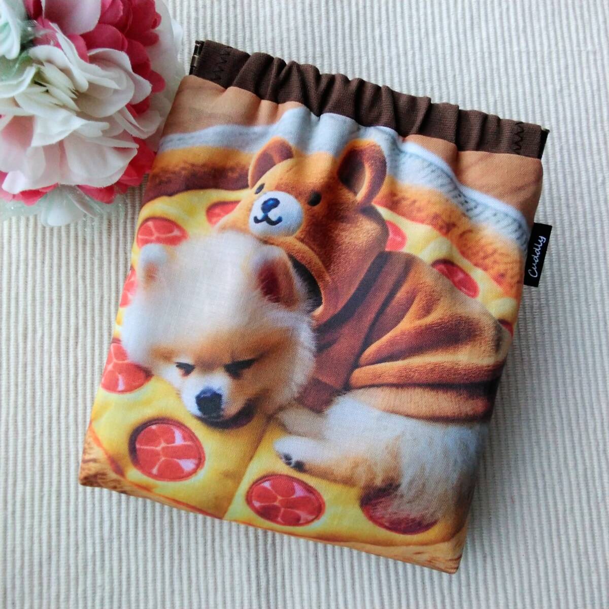 - ハンドメイド バネポーチ ピザマット ポメラニアン パネル生地