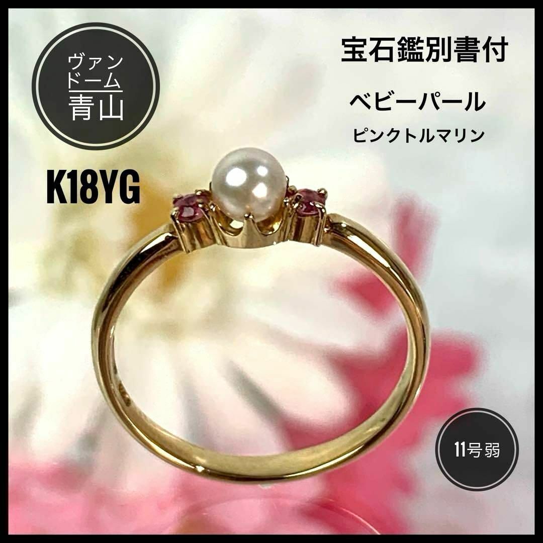 - 宝石鑑別書付 ヴァンドーム青山 K18 YG パール トルマリン 指輪 11号弱