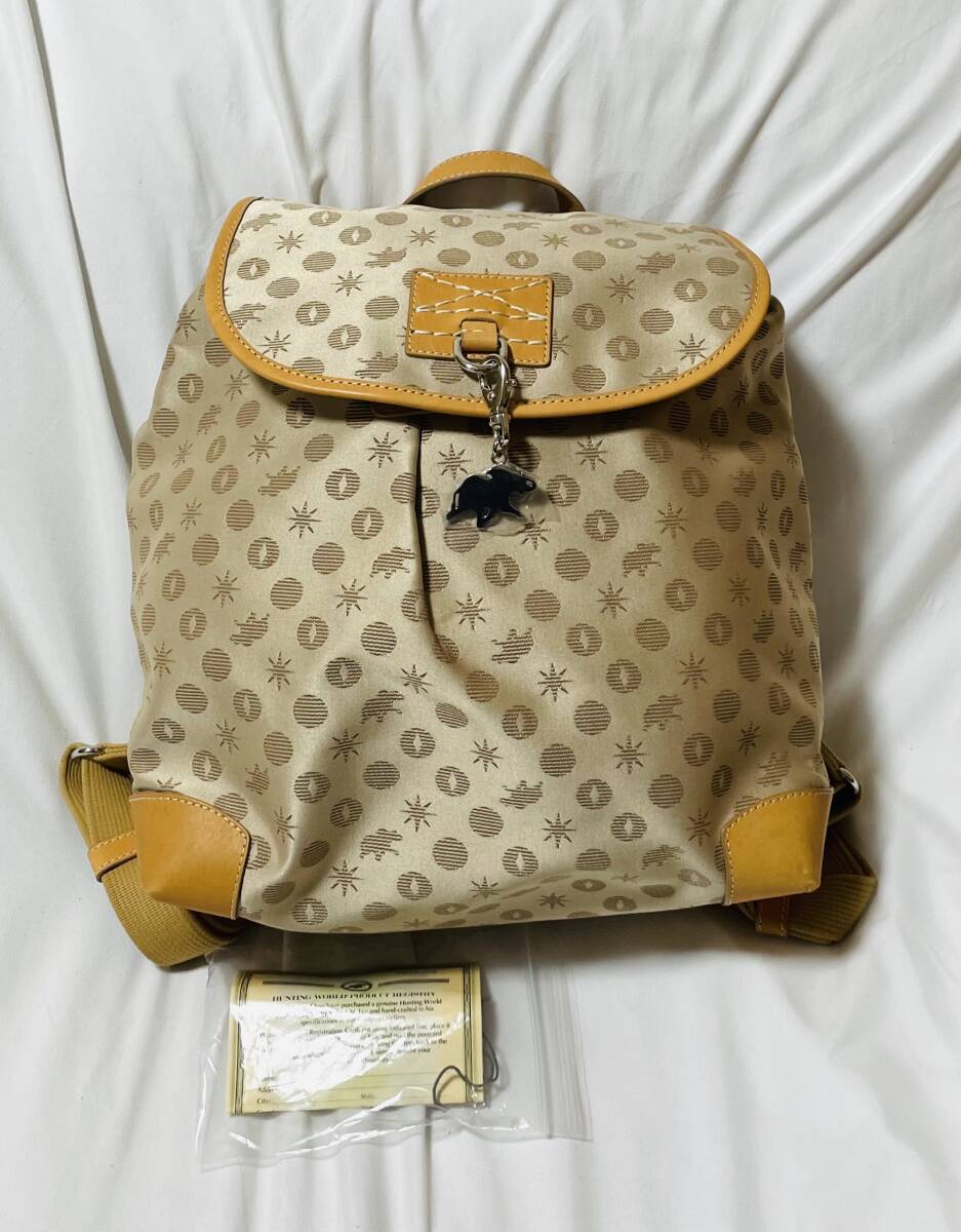 - HUNTING WORLD ハンティングワールド 総柄 バックパック リュックサック チャーム付き