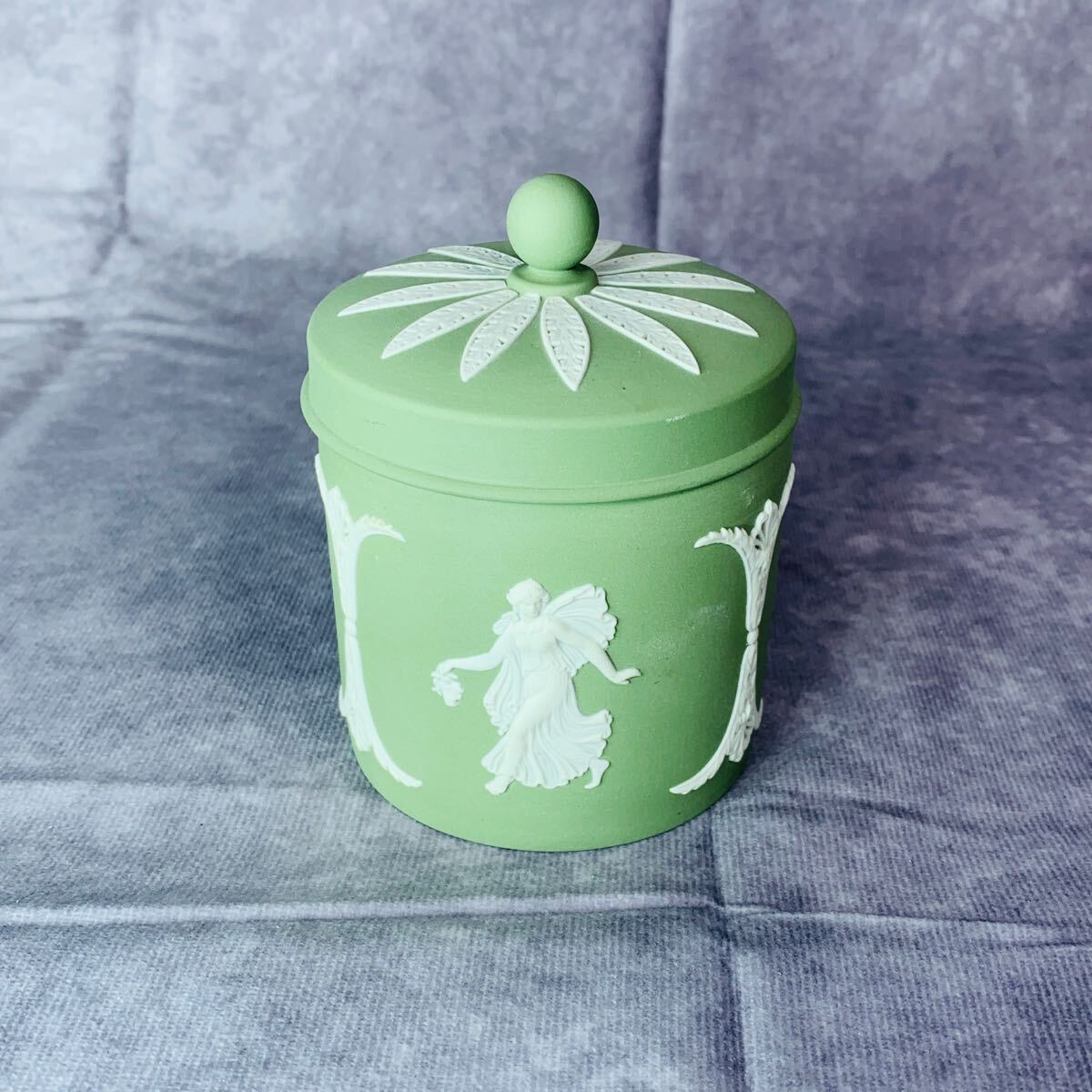 > ウェッジウッド ジャスパー 小物入れ グリーン ヴィンテージ WEDGWOOD ティーキャディー インテリア 英国 蓋物 蓋付 シュガーポット
