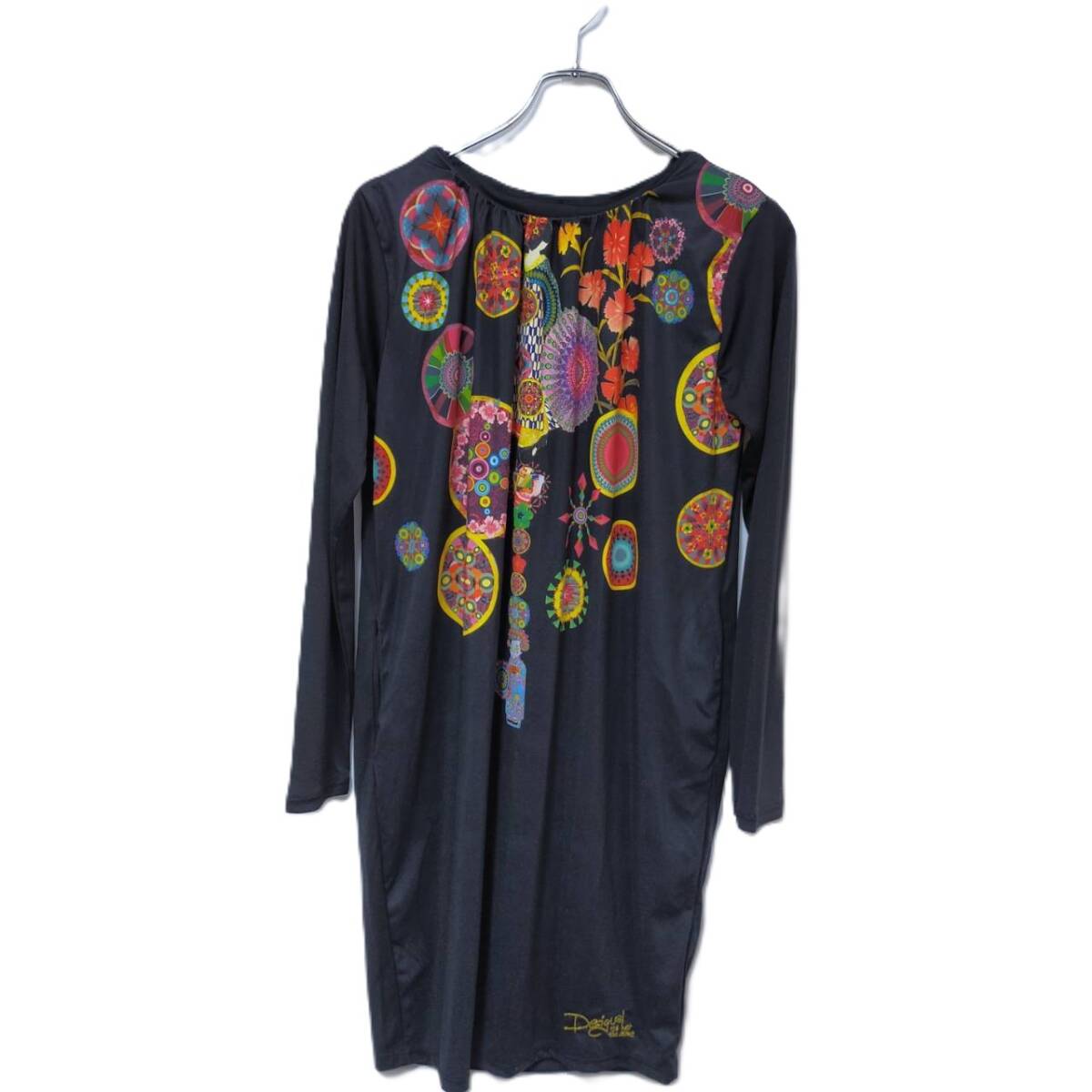 - Desigual デシグアル ワンピース 黒 Mサイズ 長袖 花柄 伸縮性あり カラフルデザイン 柔らか ひざ丈