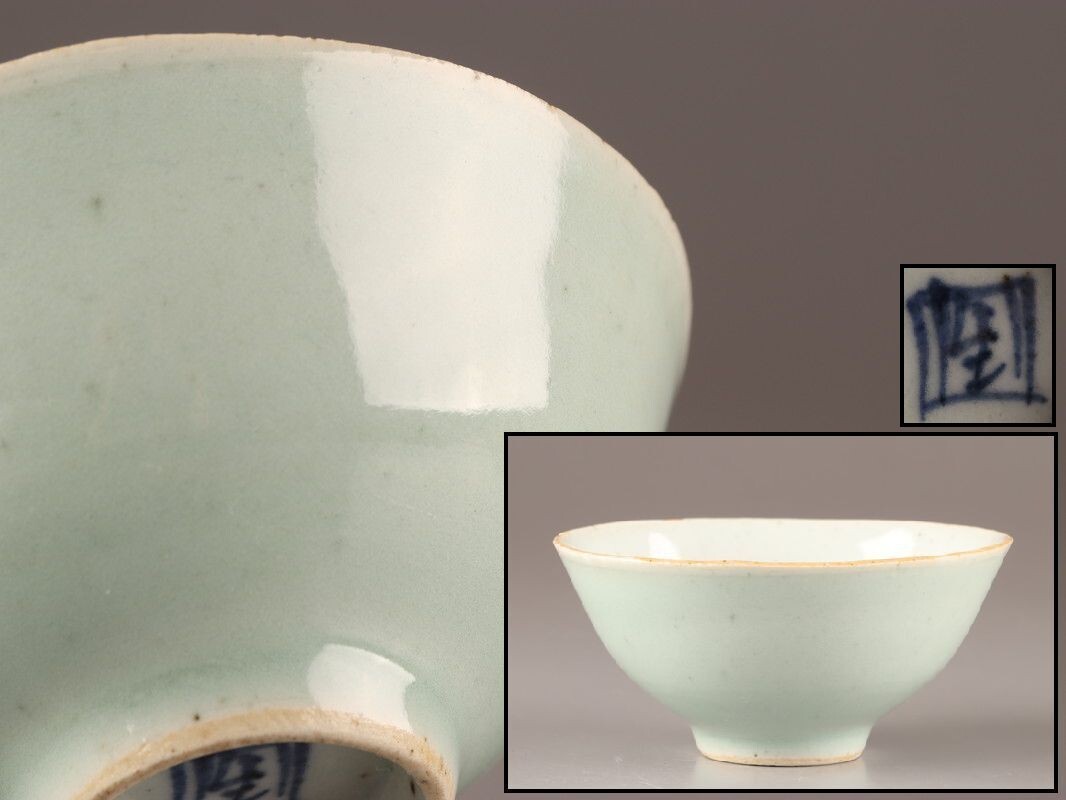 - 中国古玩 唐物 青磁 茶碗 在印 時代物 極上品 初だし品 D2796