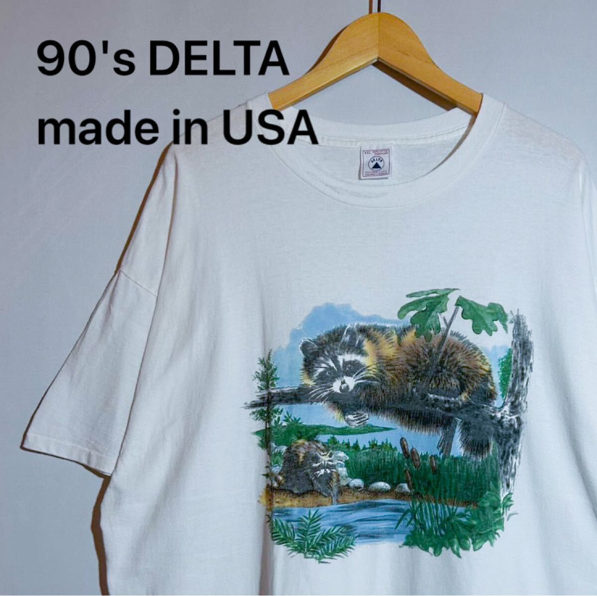 > USA製 90's DELTA デルタ ヴィンテージ Tシャツ ホワイト 白 シングルステッチ XXL アニマル フォト プリント アメリカ ビッグサイズ 古着