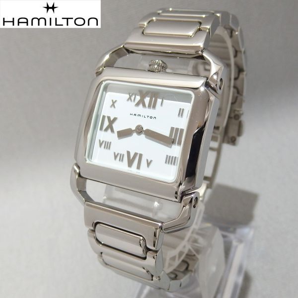 > 美品★HAMILTON コントアー 6323 スクエア クォーツ 腕時計 白文字盤 ハミルトン★
