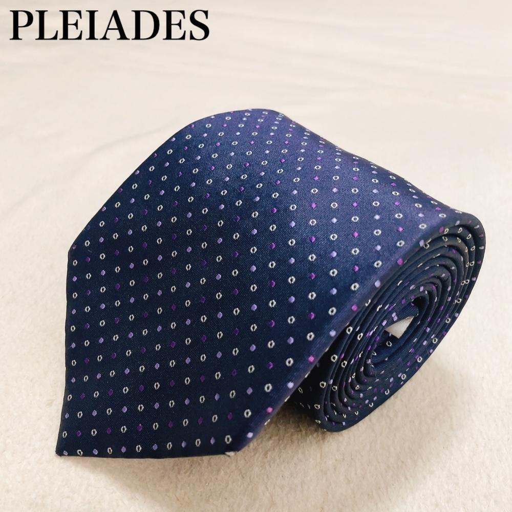 > PLEIADES プレアデス シルク100% ネイビー系 ドット柄 ネクタイ ビジネス フォーマル シンプル 高級感 エレガント パーティー 1-25