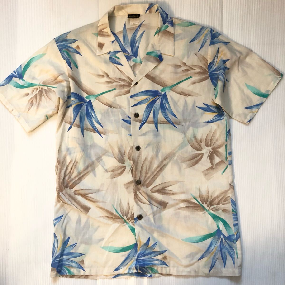 - today's man MADE IN U.S.A. M リーフ柄 ハワイアンシャツ アロハシャツ