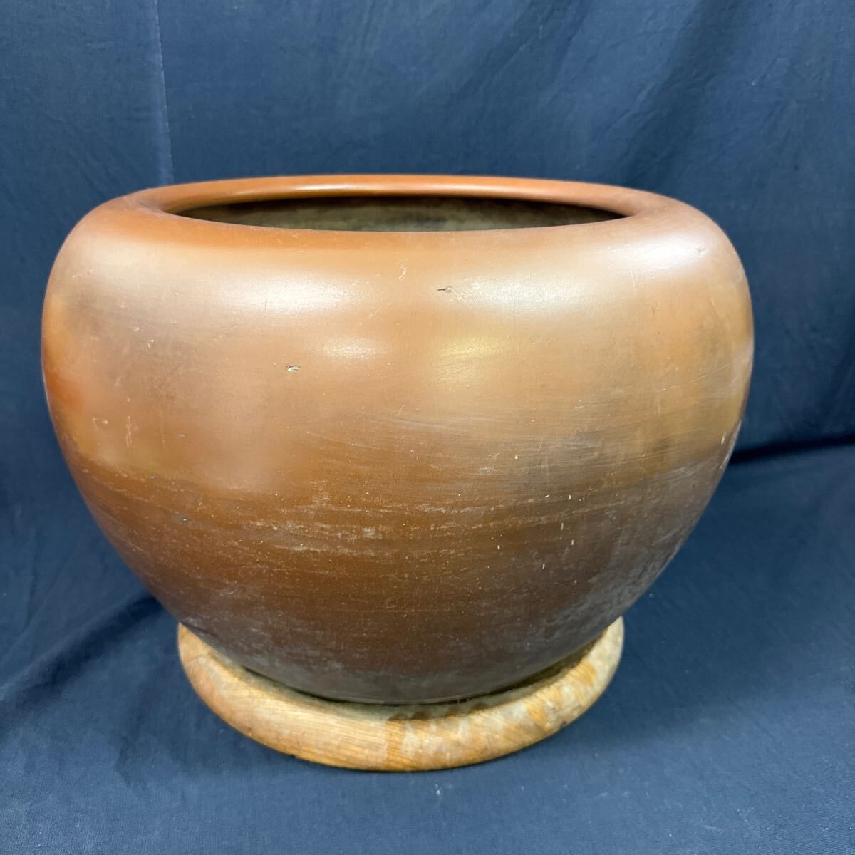 - ◆昭和レトロ 陶器製 火鉢 高さ約34cm(土台含) メダカ鉢 古民具 古民家 金魚鉢 園芸 ガーデニング アンティーク インテリア 236-95