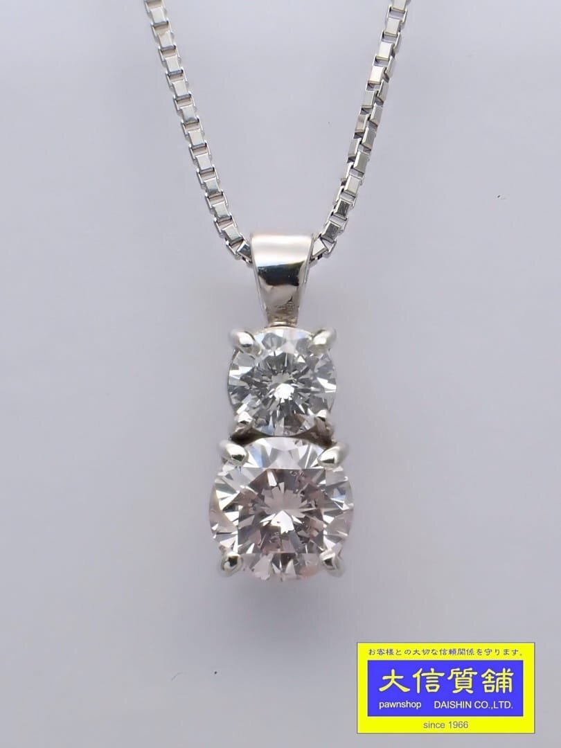 > PT850 プラチナ ピンクダイヤ ペンダント ベネチアチェーンネックレス PD0.381ct D0.14ct 45cm 2.96g 中古A+ 【送料無料】 C-9441