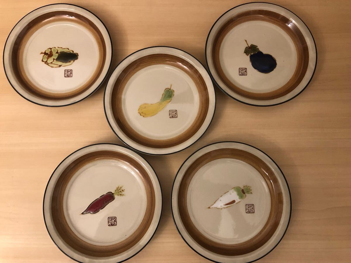 - 取り皿 銘々皿 桃山炻器 5枚セット お野菜デザイン 大根・茄子・人参・ピーマン・糸瓜