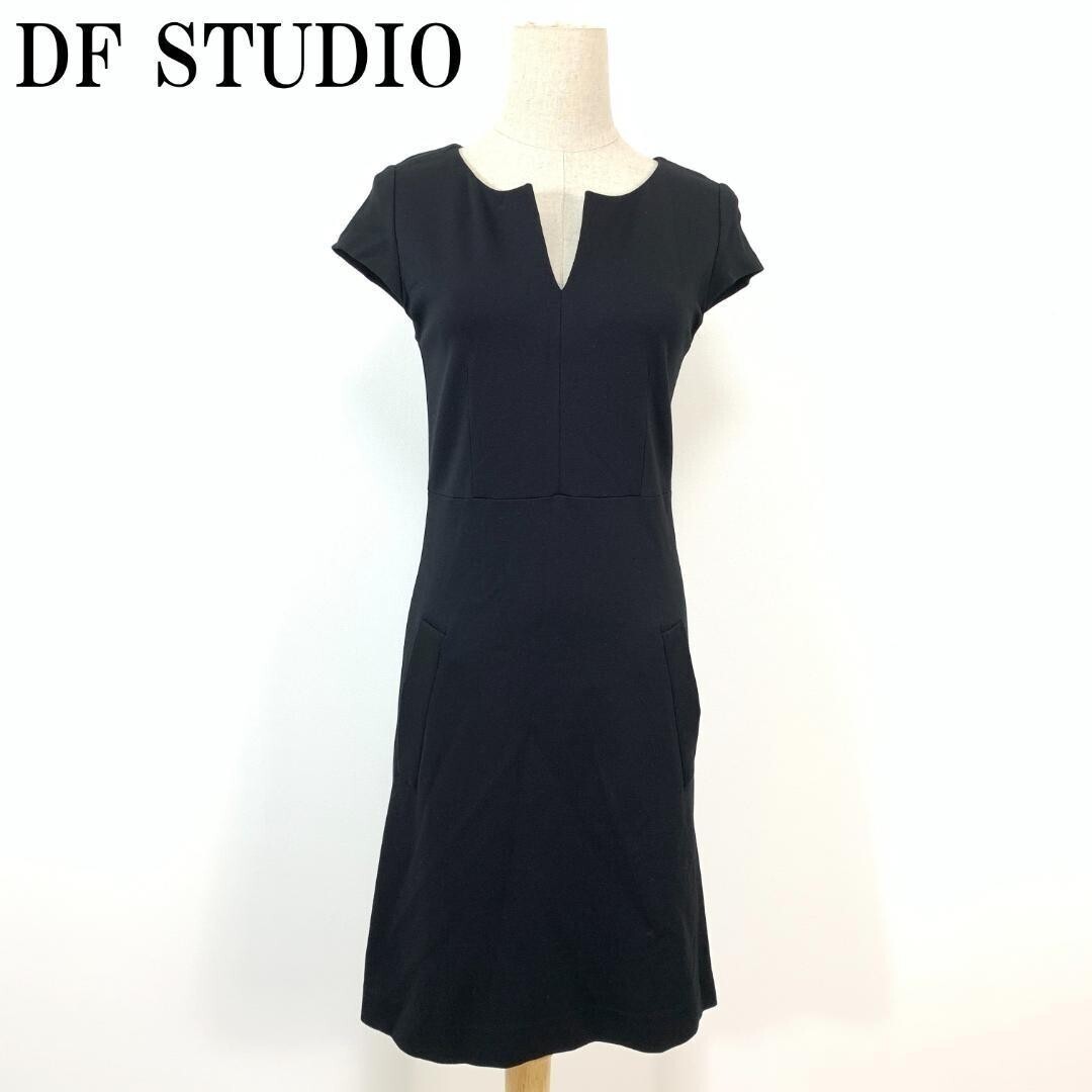 > LA6162 ディーエフスタジオ 半袖 ロングワンピース DF STUDIO Vネックカット ポケット有 ダイアンフォンファステンバーグブラック 0