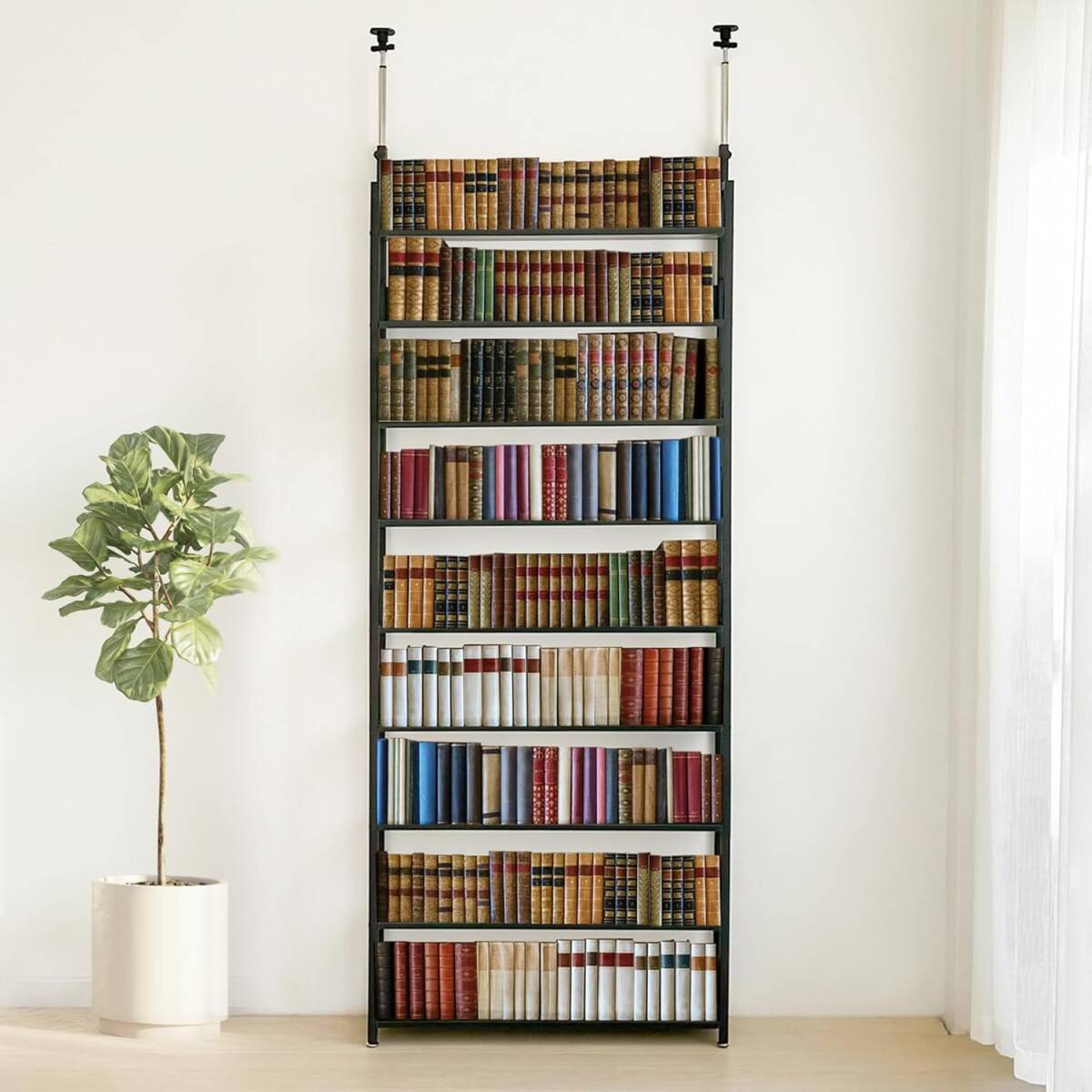- ブラック色 本せどりで成功しよう コスパの良い収納 本棚 9段 簡単設置 DIY 穴あけ 工事が不要 幅80*奥行17*高さ210.5-275cm