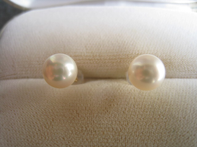 - [SAMU]綺麗!!照り抜群天然あこや真珠7.5mmX2粒 k18金イエローゴールドピアス 超美品!