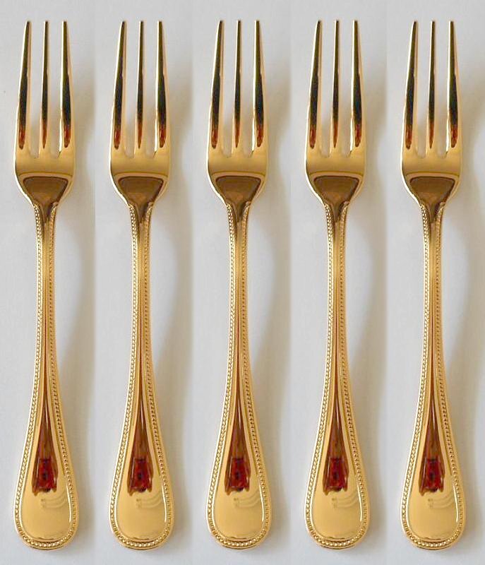 > ★ラッキーウッド24金仕上フレンチアクセントヒメフォーク5本高級18-10ステンレス使用24金仕上げ日本製新品