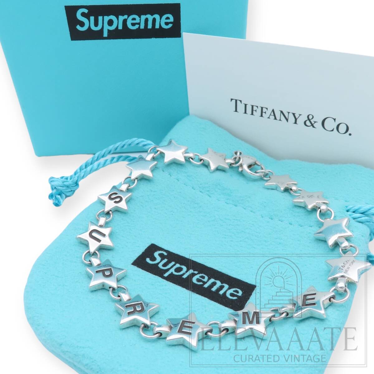 - 希少 美品 Tiffany&Co. ティファニー シュプリーム パフ スター シルバー メンズ ブレスレット Ag925 Supreme TO31B