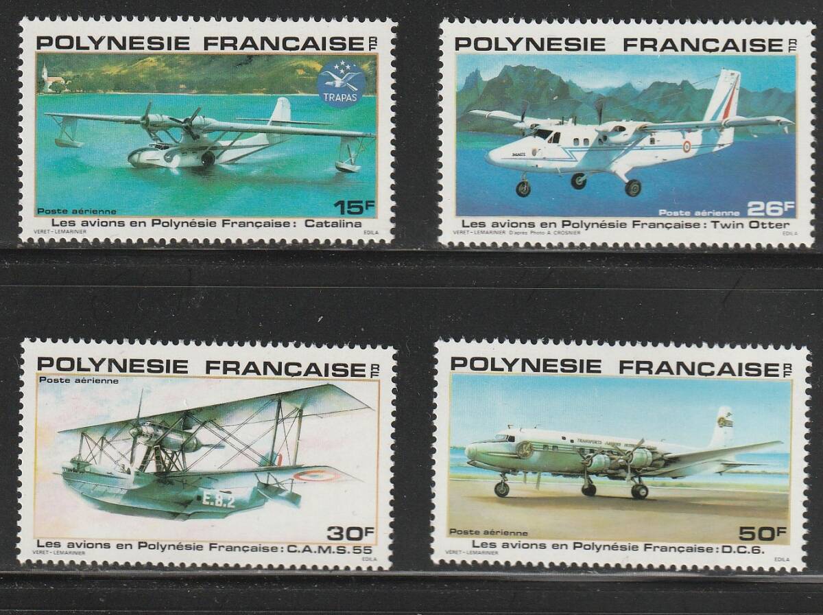 - (仏領ポリネシア)1980年水上飛行機4種完、スコット評価5ドル(海外より発送、説明欄参照)