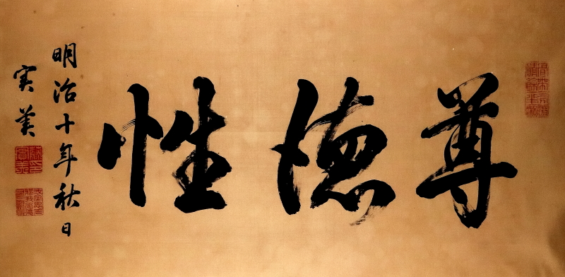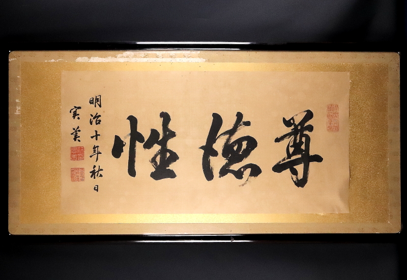 - 150■【真作】西南戦争の年に書かれた名品大作 三条実美 書 「尊徳性」 額装 明治10年41才 尊攘派公卿の中心