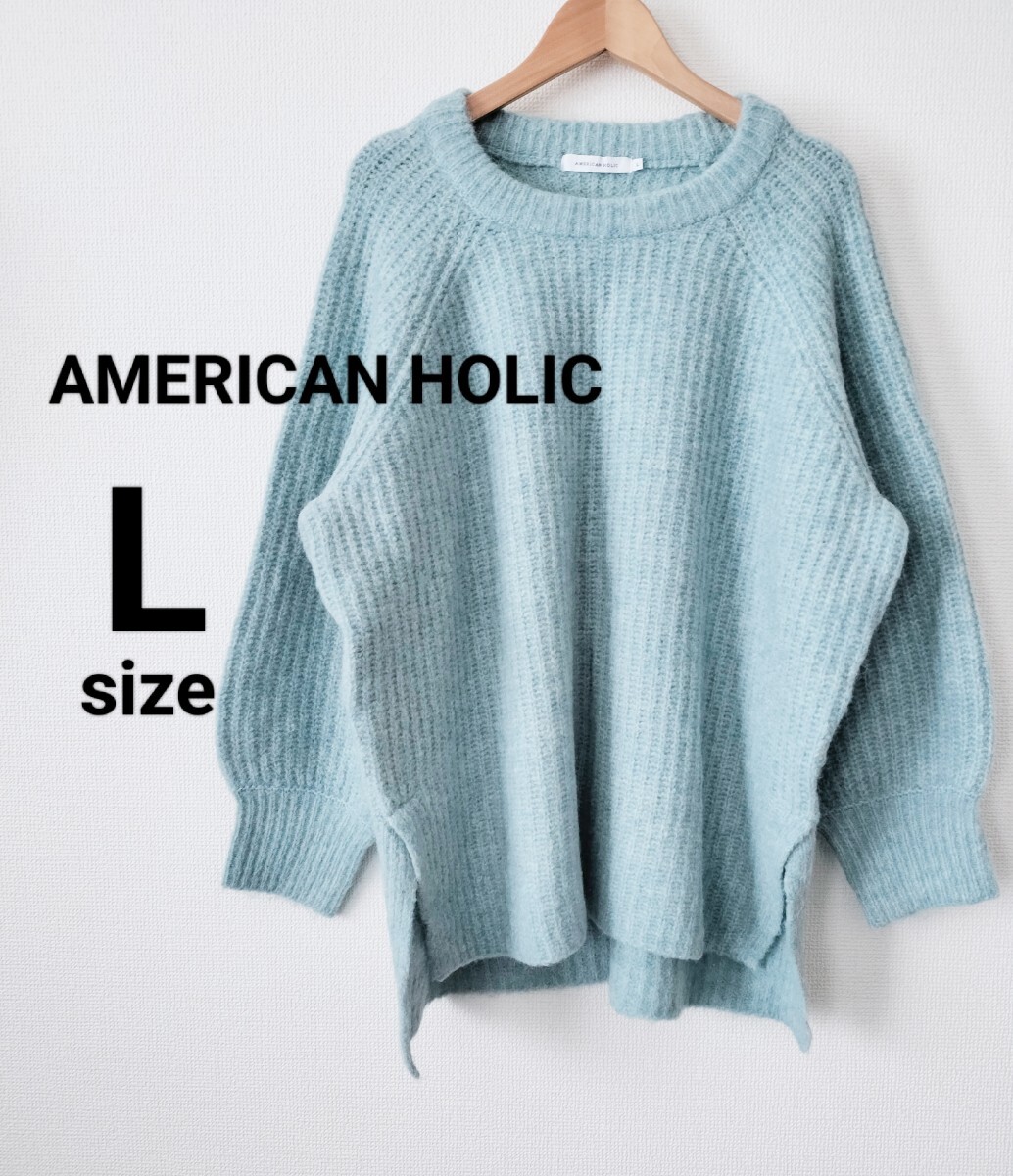 - アメリカンホリック Lサイズ MIXヤーンラグランニットプルオーバー ニット セーター AMERICAN HOLIC サックスブルー 水色 ブルー 長袖