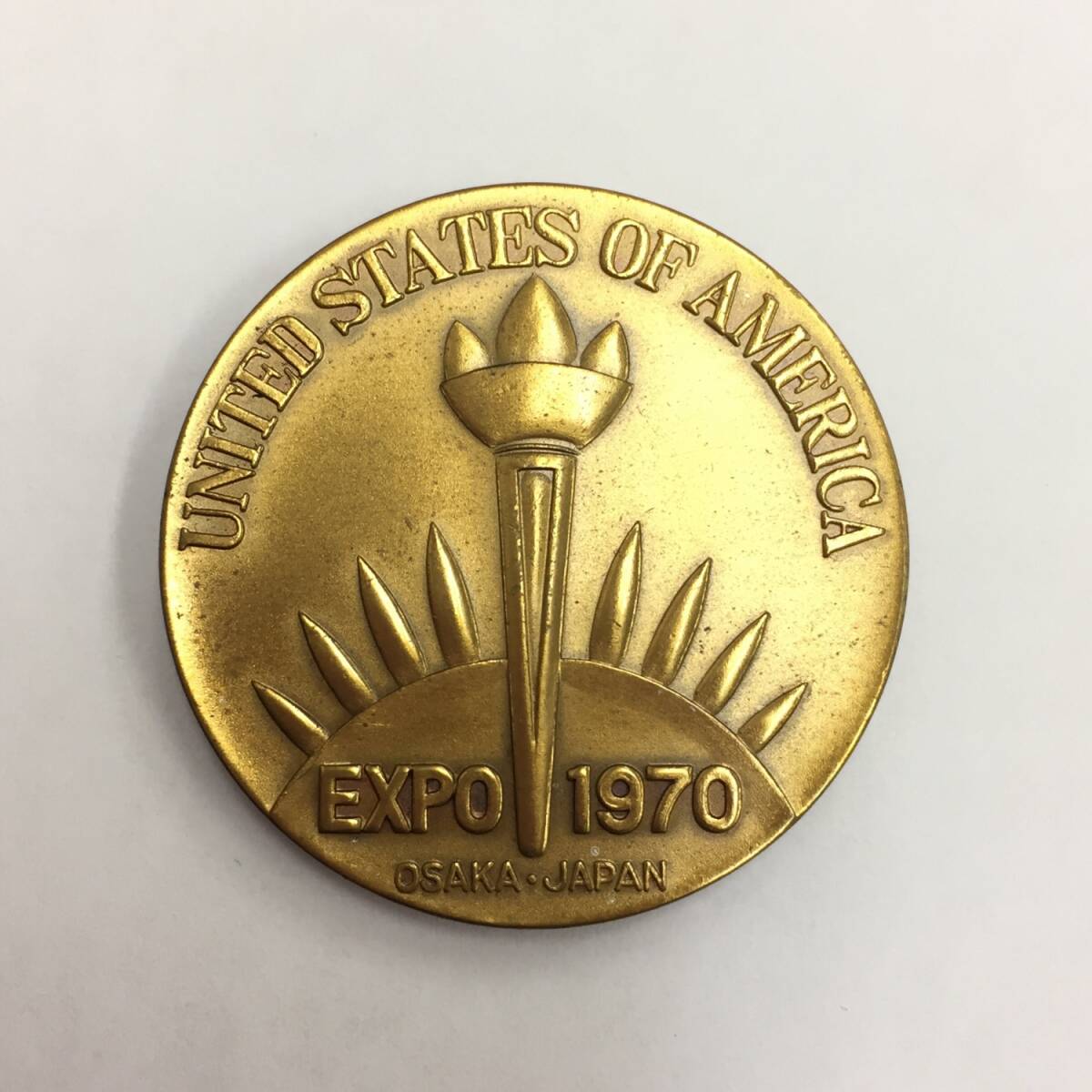 > [雑貨] メダル「大阪万博」1970年「アメリカ館」記念品 メダル 銅色の金属 直径:約3.3cm レトロ アンティーク ビンテージ expo 70