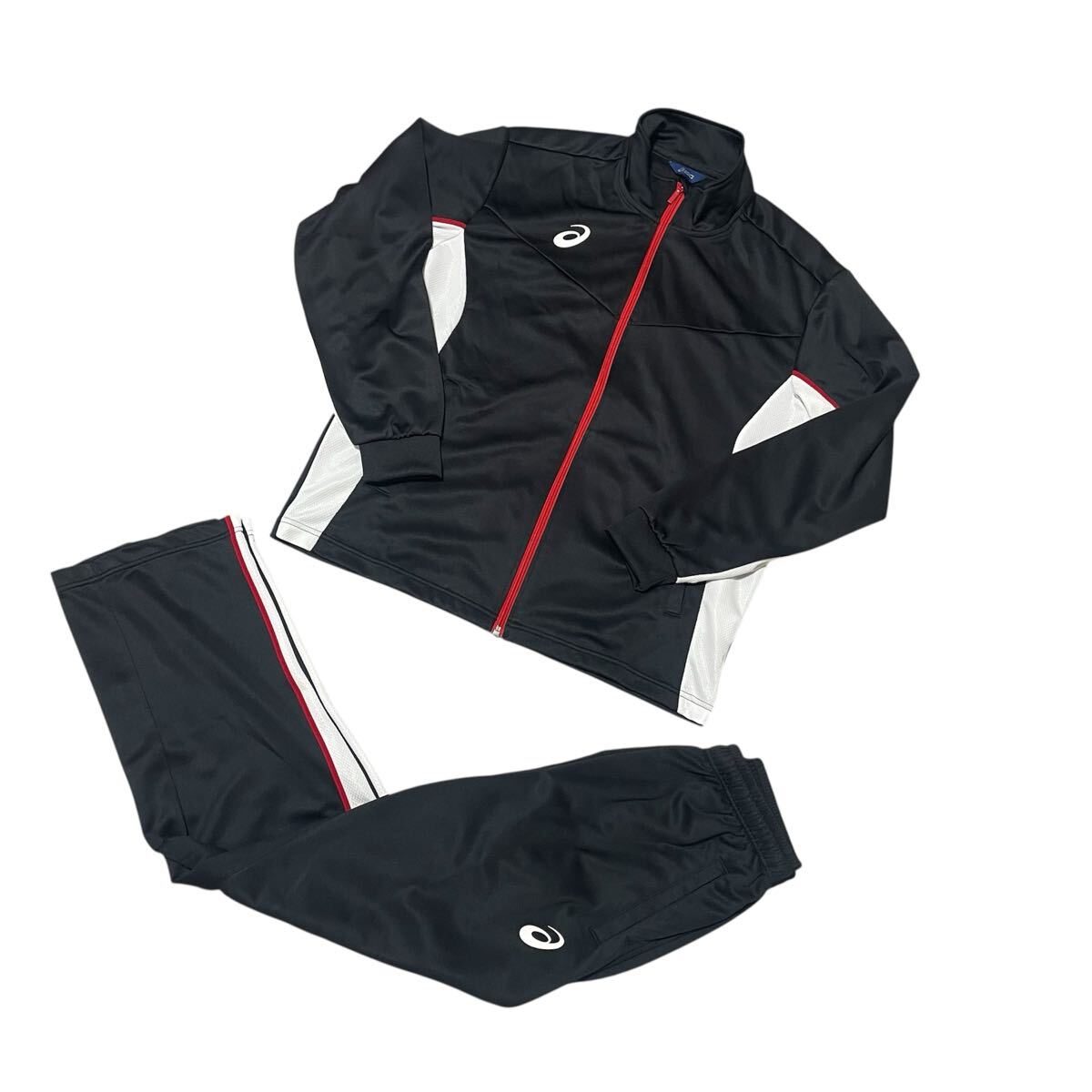 > 【超希少・入手困難】asics アシックス ジャージ セットアップ 上下 黒 白 赤 Mサイズ