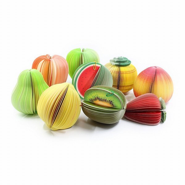 - 「ago-a2」 フルーツ メモ帳 盛り合わせ 9種 セット 3D 立体 メモブック クリップ 網ネット付き