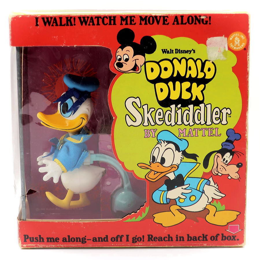 > ディズニー ドナルド Skediddle Kiddle Mattel社 1968年 未開封 台を転がすと頭を左右に動かしながら歩くように手足を動かす