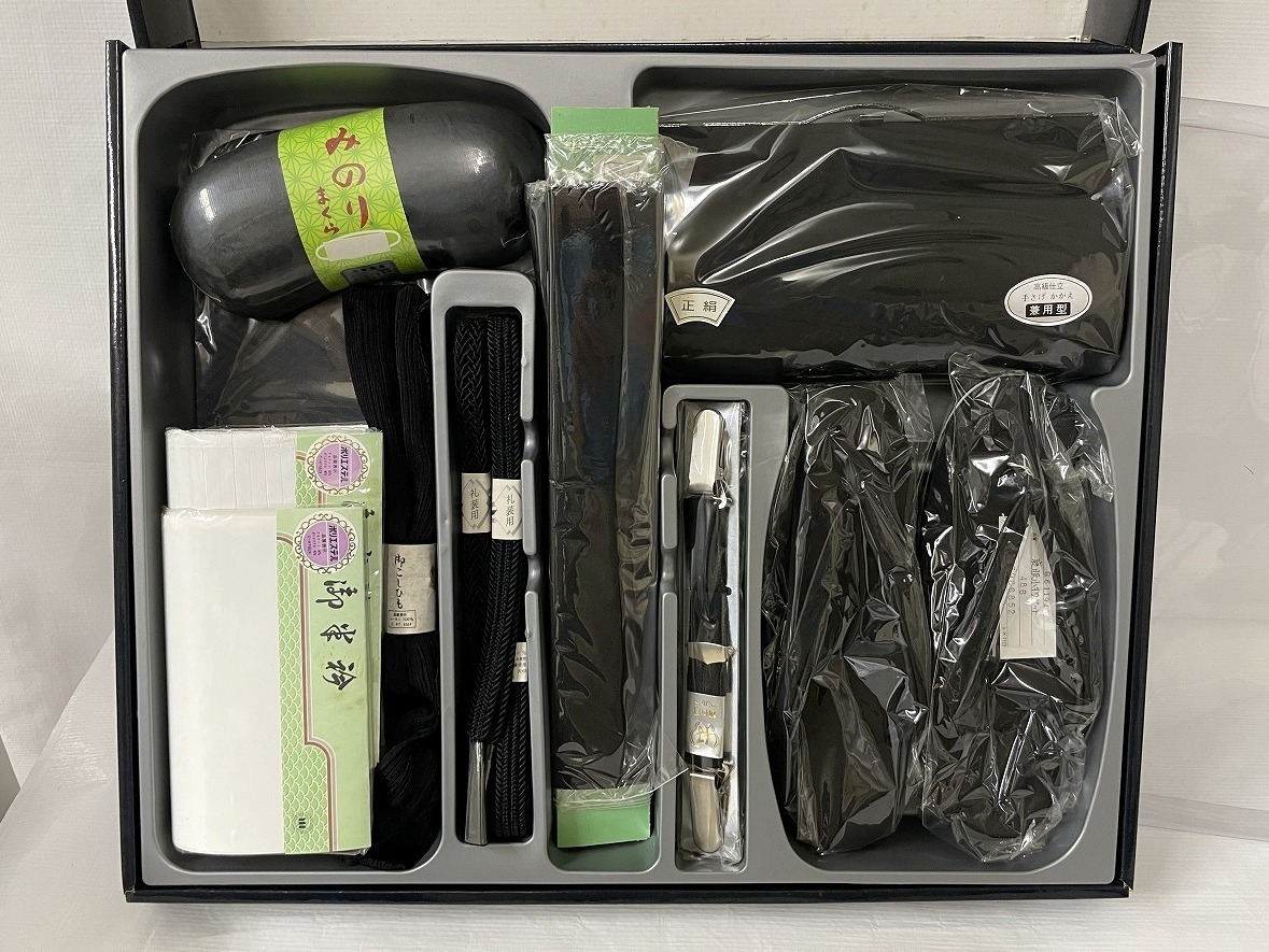- 限定セール!新品 5万円相当 喪服用 和装小物13点セット 草履バッグ 帯揚げ 着付けベルト 前芯 こしひも まくら ふくさ 半襟 法事 葬儀 C