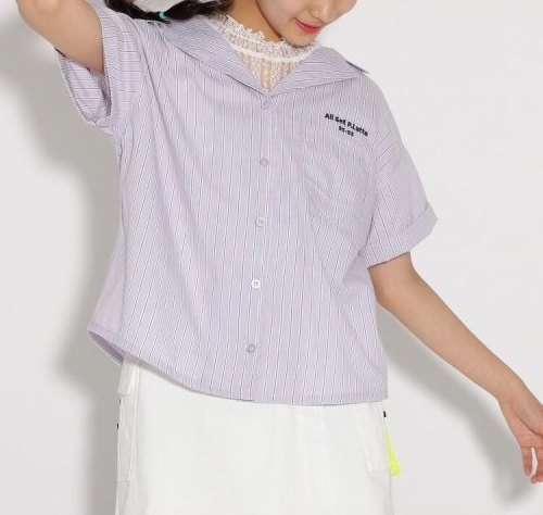 > 新品 PINK-latte 開襟シャツ+レースノースリ セット ライトパープル(381) 15(XS150cm)